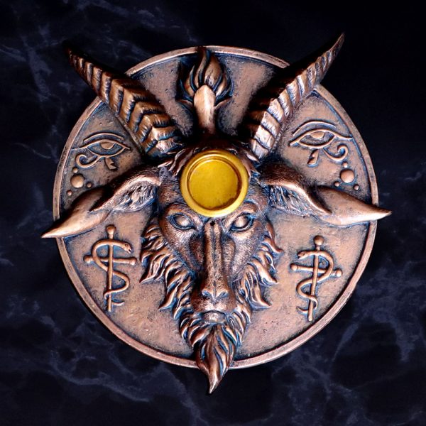 This expertly crafted Baphomet Incense burner and candle holder comes from alternative brand Nemesis Now. Adorned with the face of the mighty Baphomet, this small circular holder also features the Staff of Asclepius and the eye of Horus. In the centre of the Baphomet’s head, there is a small dish where you can place your favourite candle and a small hole to burn your incense sticks. Cast in the finest resin before being expertly hand-painted, this piece is perfect for those who wish to invoke the Baphomet to bring balance to their lives.